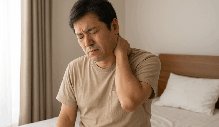 朝起きたときに首や肩が重い、痛い、だるい方へ。